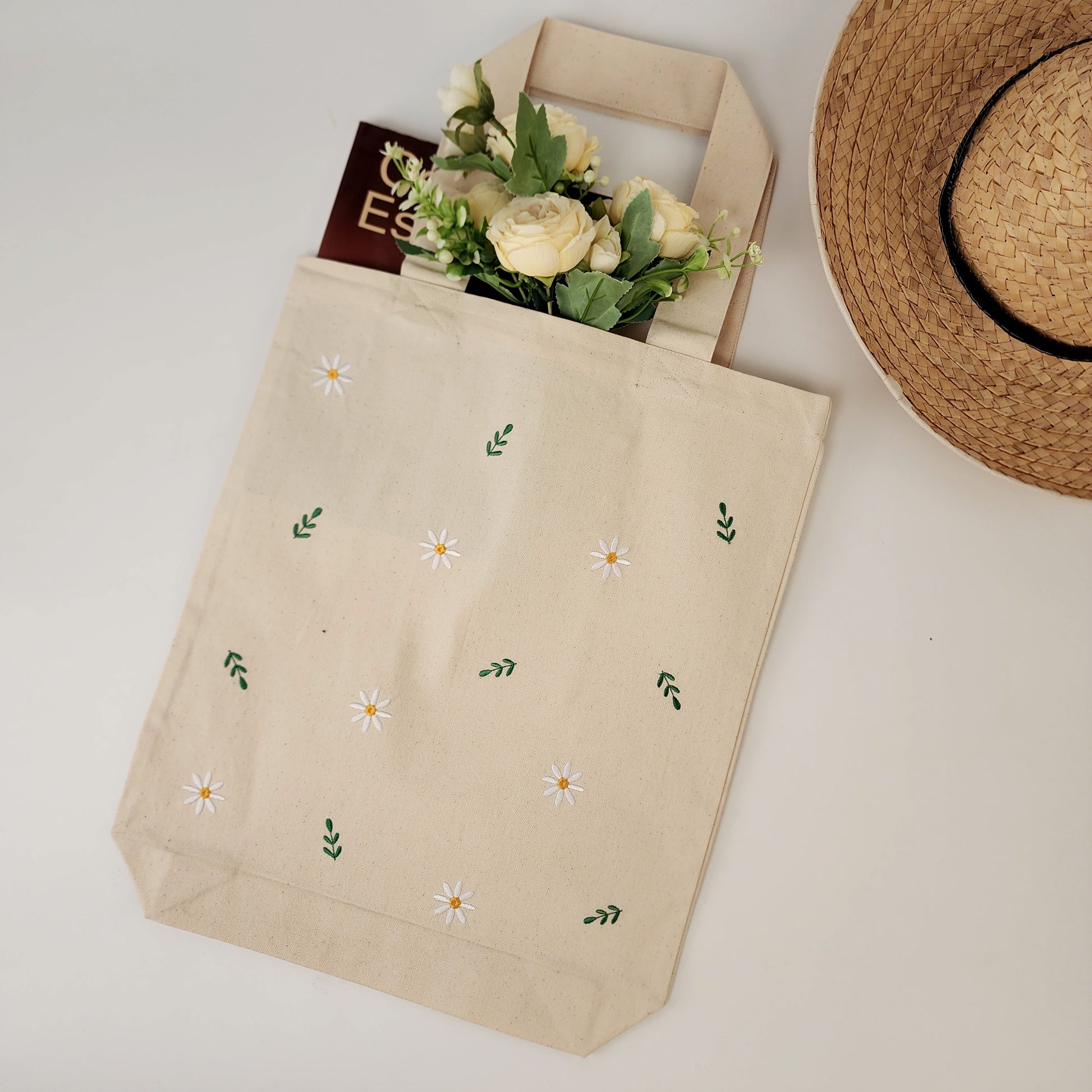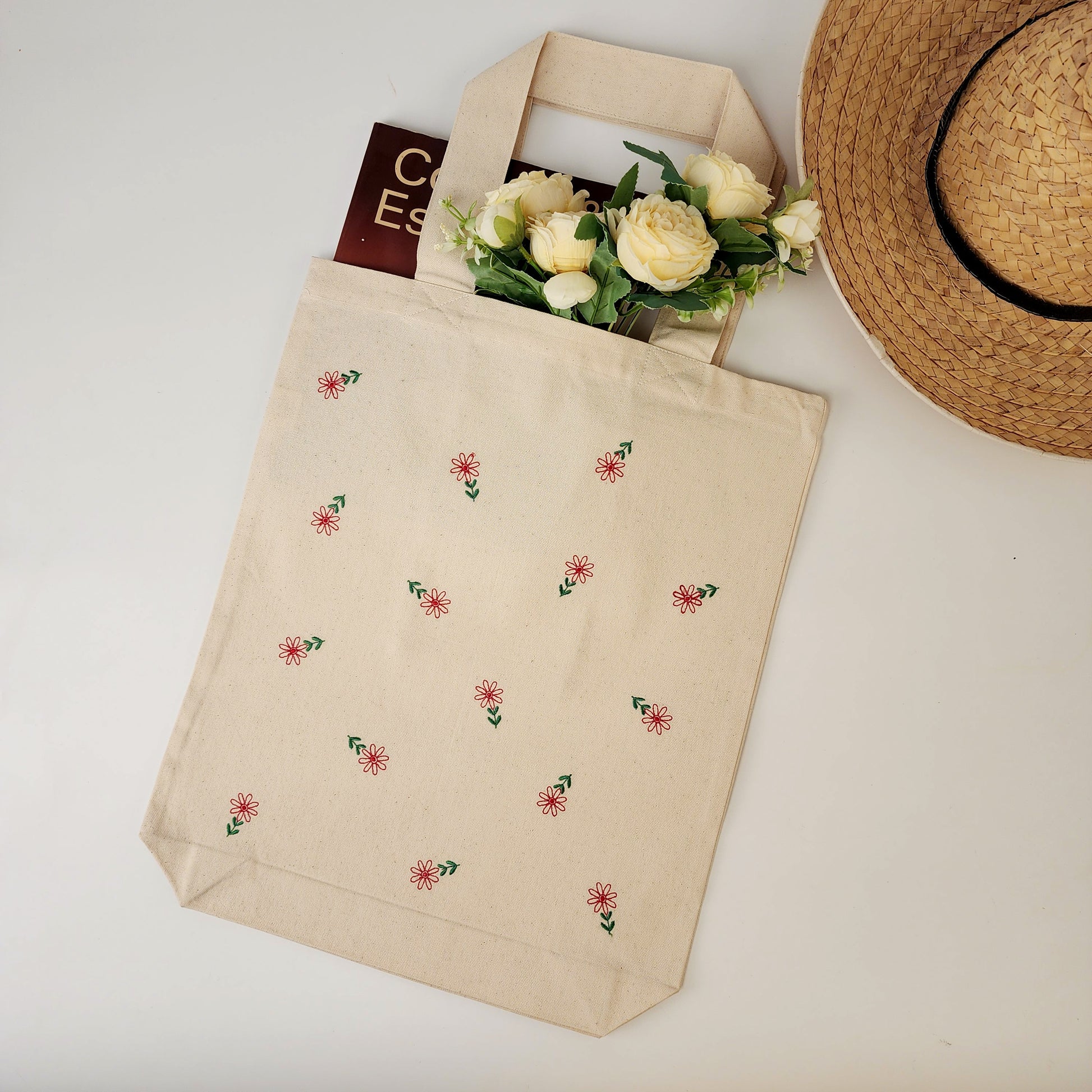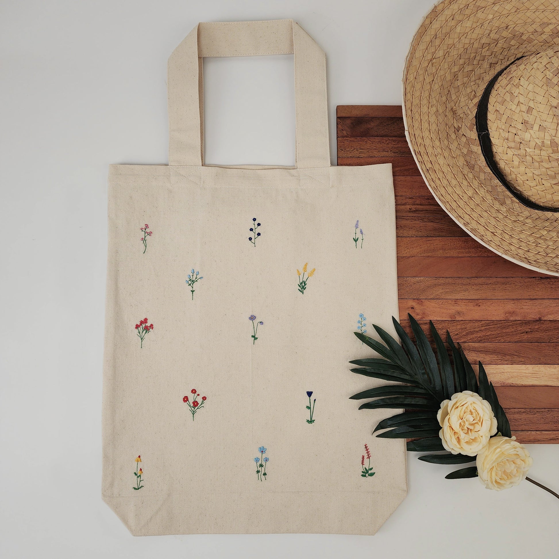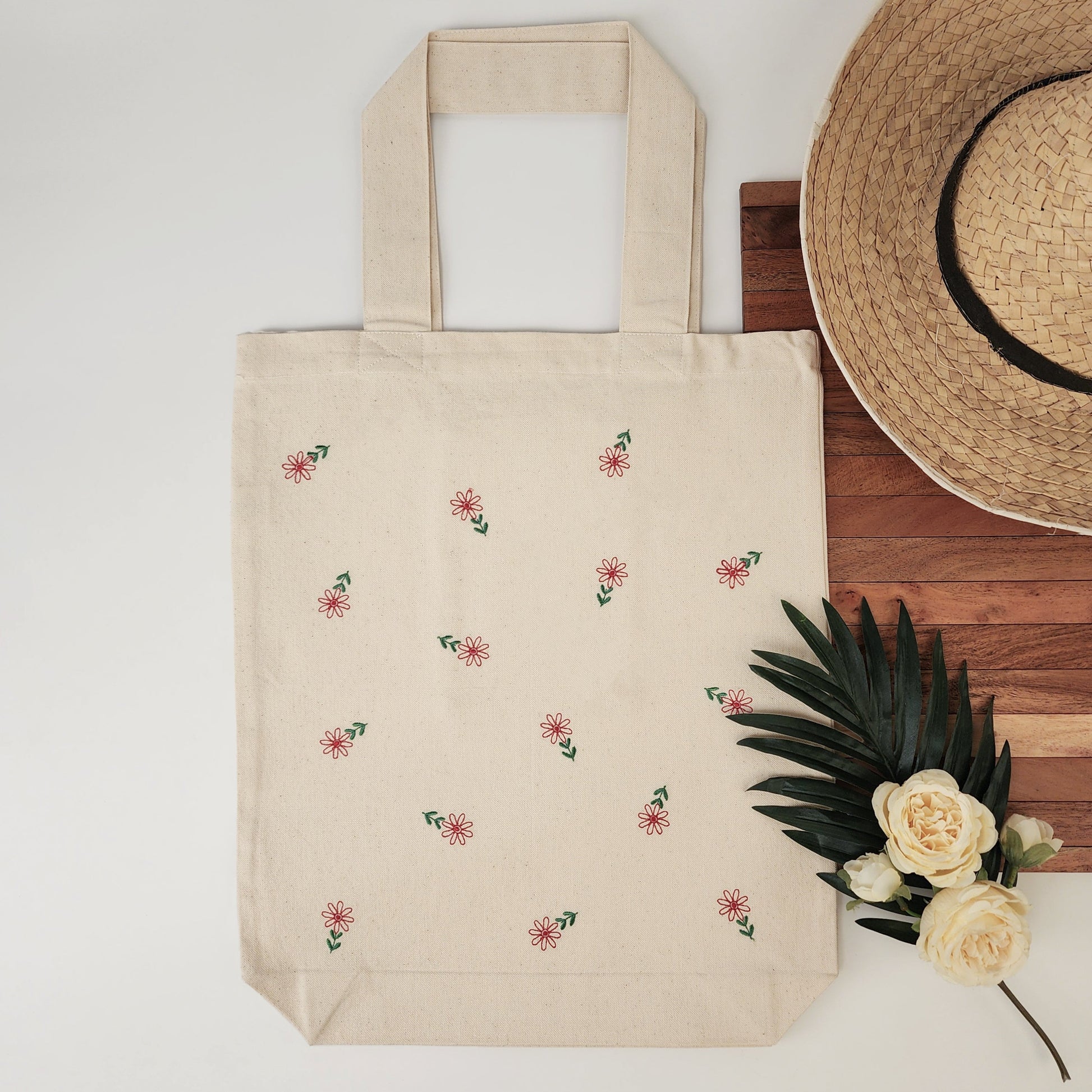 Floral Embroidered Tote Bag